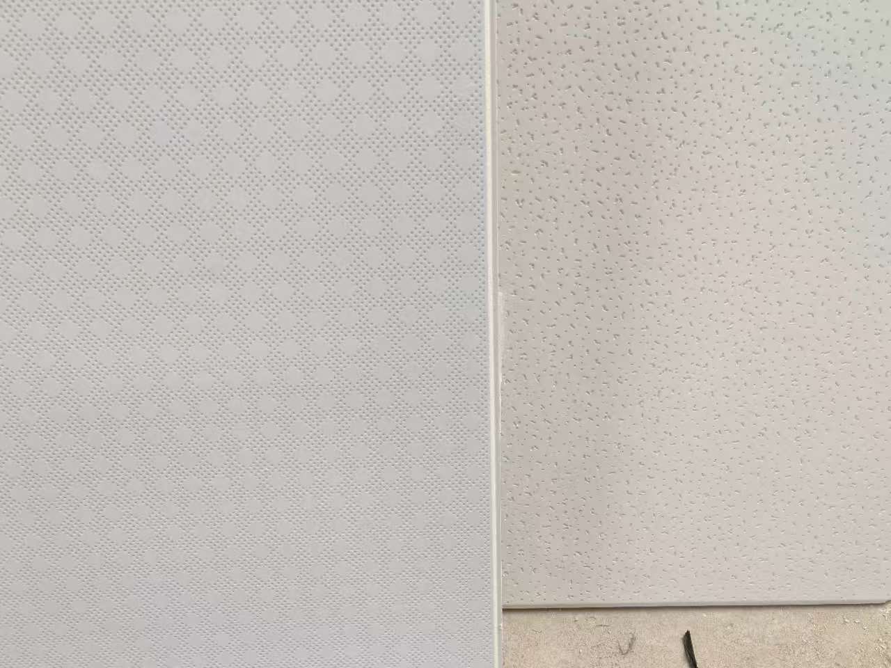 The gypsum ceiling tiles are of two kinds, one is the colorful designs, another is the white designs.